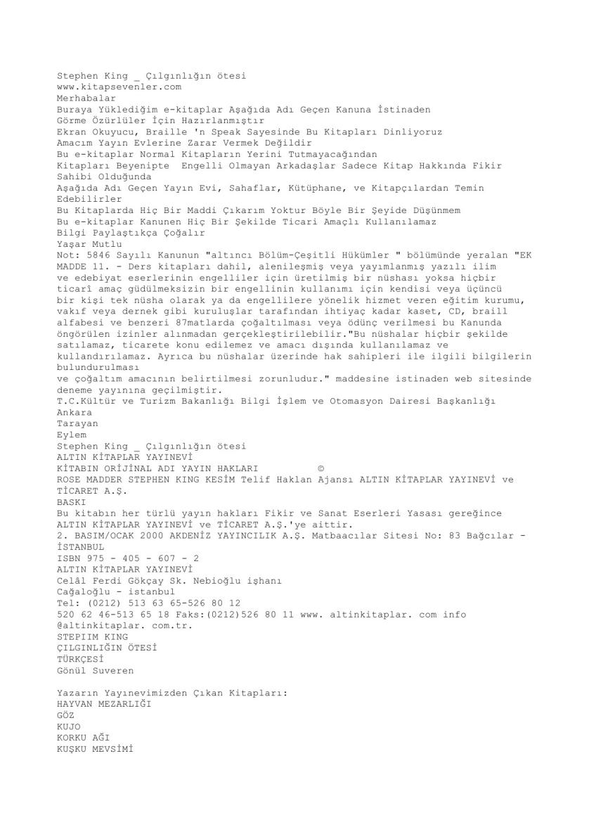 Çılgınlığın ötesi, Bilinmiyor tarafından kaleme alınmış bir eserdir.