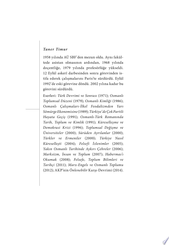 Taner Timur, Marksizm İnsan ve Toplum kitabının yazarıdır. Eserleri Yordam Kitap tarafından yayınlanmaktadır. Yazarın tüm kitaplarına kitap.center üzerinden ulaşabilirsiniz.