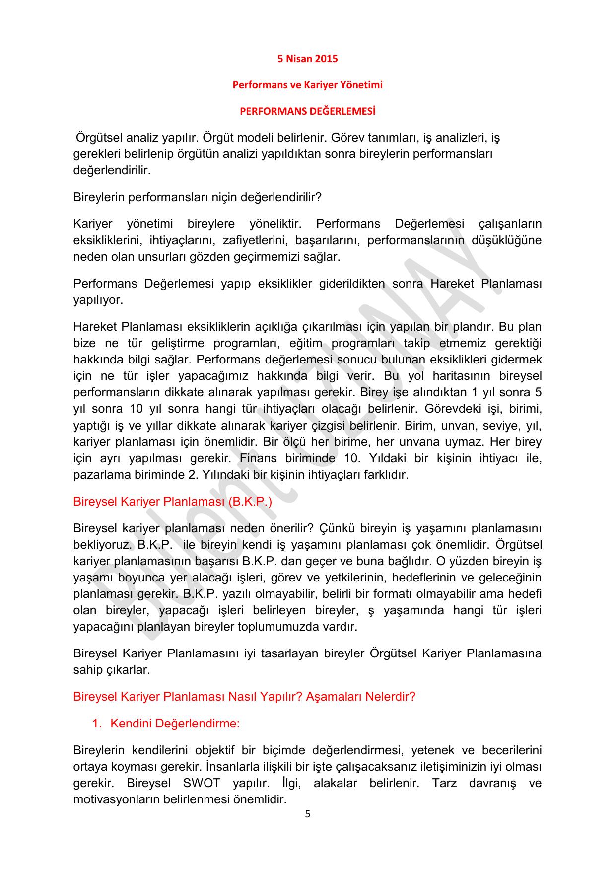 Performans ve Kariyer Yönetimi Notları