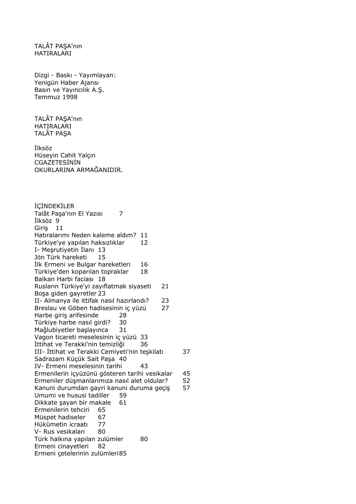 Talat Pasa nin Hatiralari — Ücretsiz E-Kitap